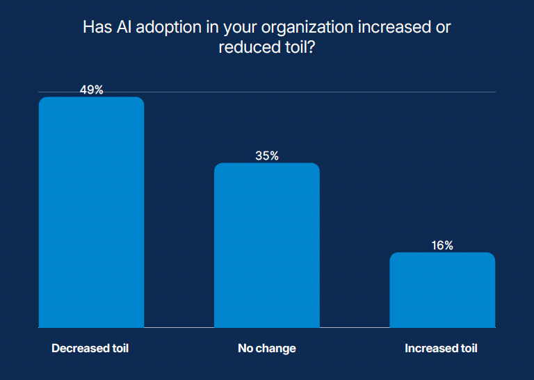 However, when we asked if AI adoption has increased or reduced toil, the answers were uneven.
