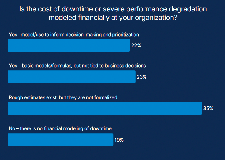 Another signal reinforces this point. Fewer than one in four organizations formally model the financial cost of slowness or downtime.